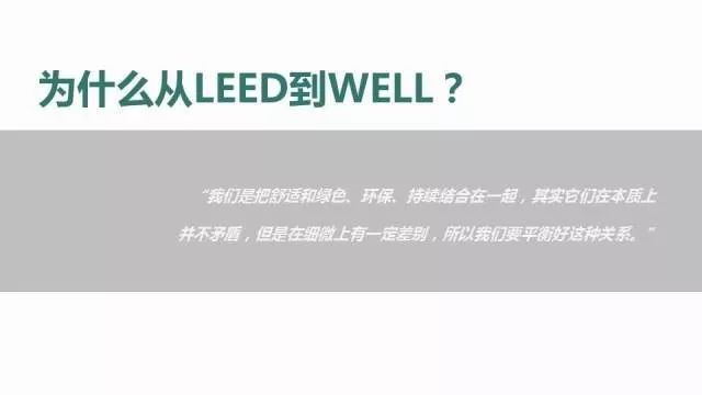 问:行外人会觉得LEED已经很牛了,为什么还要推一个WELL出来?