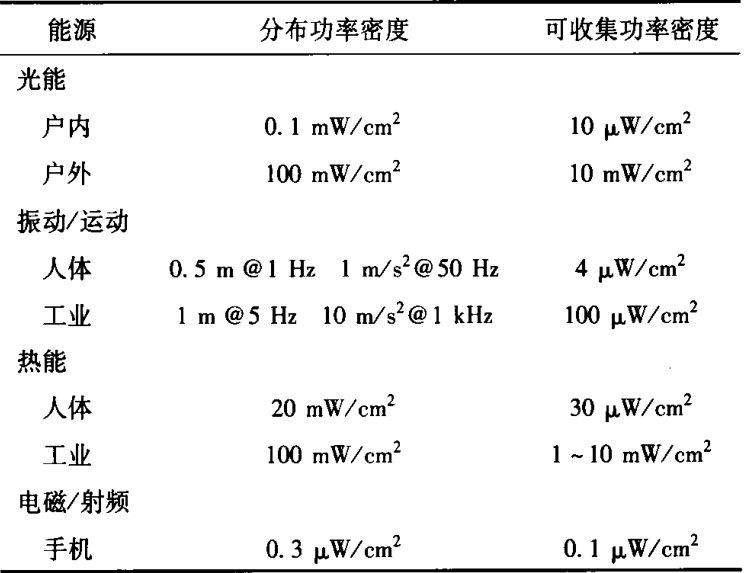 表1 不同能源的分布功率密度及可收集功率密度情况