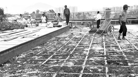 昨日,海都记者提前探访了位于海峡奥体运动员村配套酒店及裙楼的屋顶花园。该屋顶花园位于酒店三楼天台,约六千多平方米,昨施工已接近尾声。
