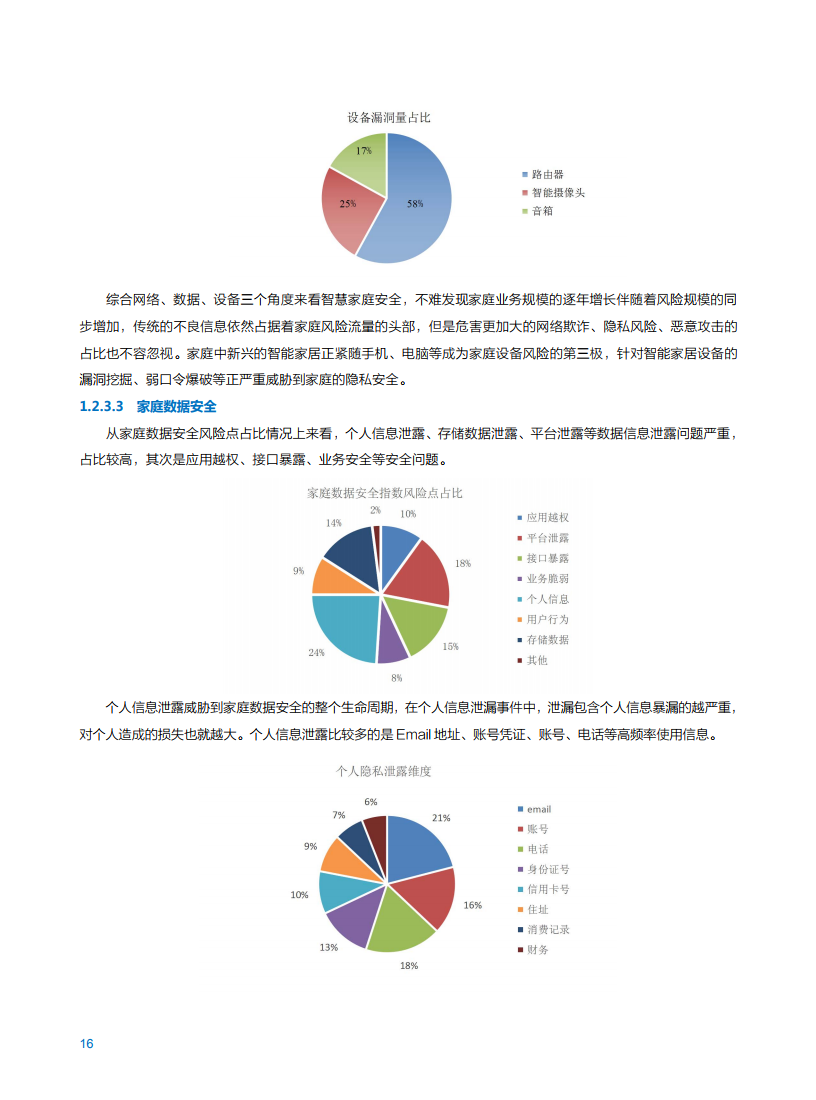 而家庭安全态势总体平稳,博彩、仿冒、欺诈、信息泄露等风险略有增加。家庭终端公开漏洞数量呈上升趋势,路由器、摄像头、音箱占据前三位。