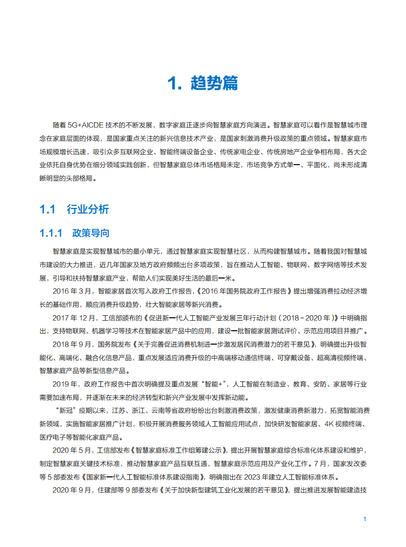 随着 5G+AICDE 技术的不断发展,数字家庭正逐步向智慧家庭方向演进。智慧家庭可以看作是智慧城市理念在家庭层面的体现,是国家重点关注的新兴信息技术产业,是国家刺激消费升级政策的重点领域。