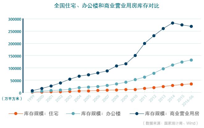 国家统计局数据显示,2015年办公楼投资额累计为6210亿元,同比增长达10.1%;商业营业用房开发投资为14607亿,同比增长1.8%,而住宅投资额为64595亿元,增长达0.4%。